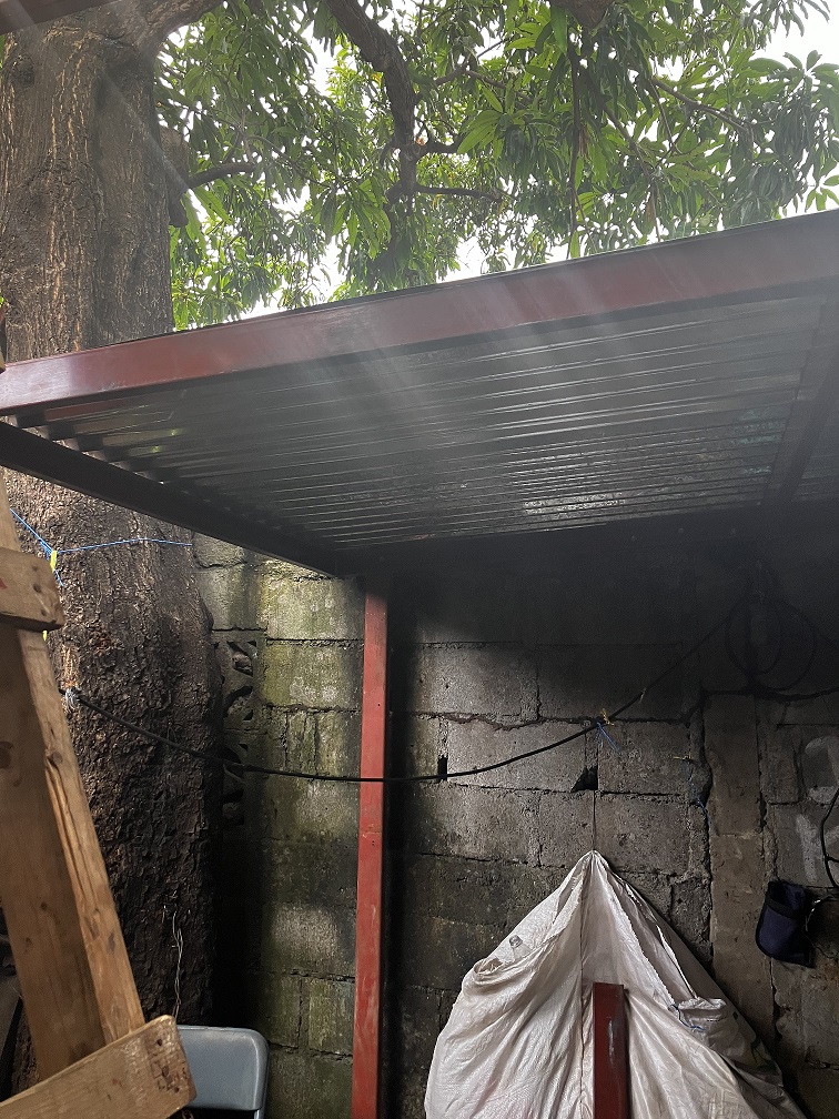 Through the love and generosity of others we have been able to purchase materials for a new metal roof, supported by steel posts and beams which have been cemented in the ground.