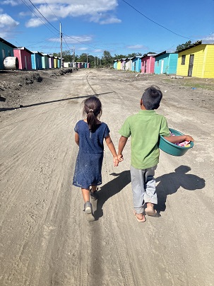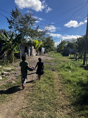 Following these 2 children to their home to deliver clothes and school supplies.1. Led out of our neighborhood.